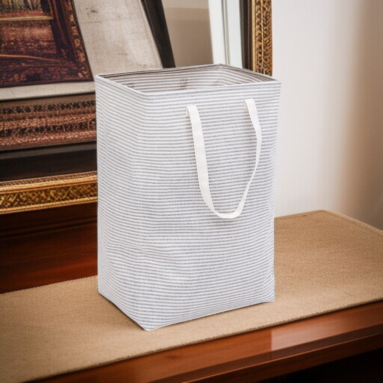 스트라이프 라지 세탁 바구니는 접이식 디자인으로 공간 절약 가능하며, 패브릭 소재로 통기성이 좋고 옷 수납과 더러운 옷 정리에 적합합니다.